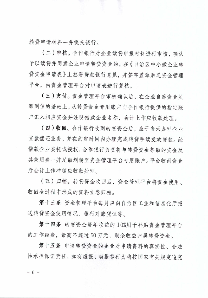 自治區(qū)中小微企業(yè)轉(zhuǎn)貸資金使用管理暫行辦法